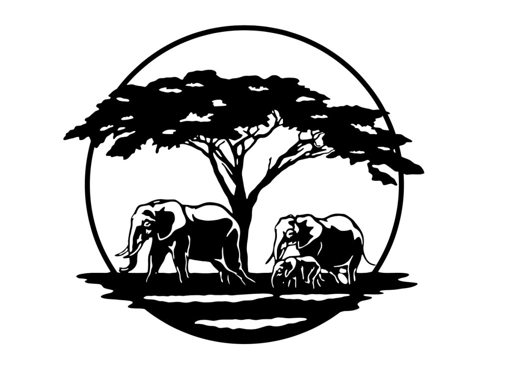 Dekorace na zeď - Africké designy - Kruh sloni pod stromem