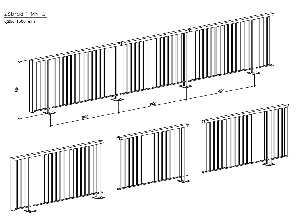 Mostní zábradlí MK2 výšky 1300mm od 6476 Kč/m cena bez DPH