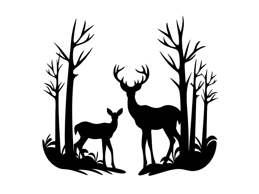 Dekorace na zeď - Obraz jelen a mládě v lese