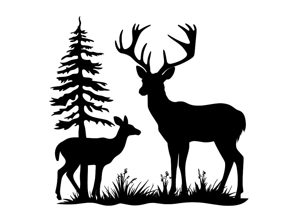 Dekorace na zeď - Obraz jelen a mládě v lese