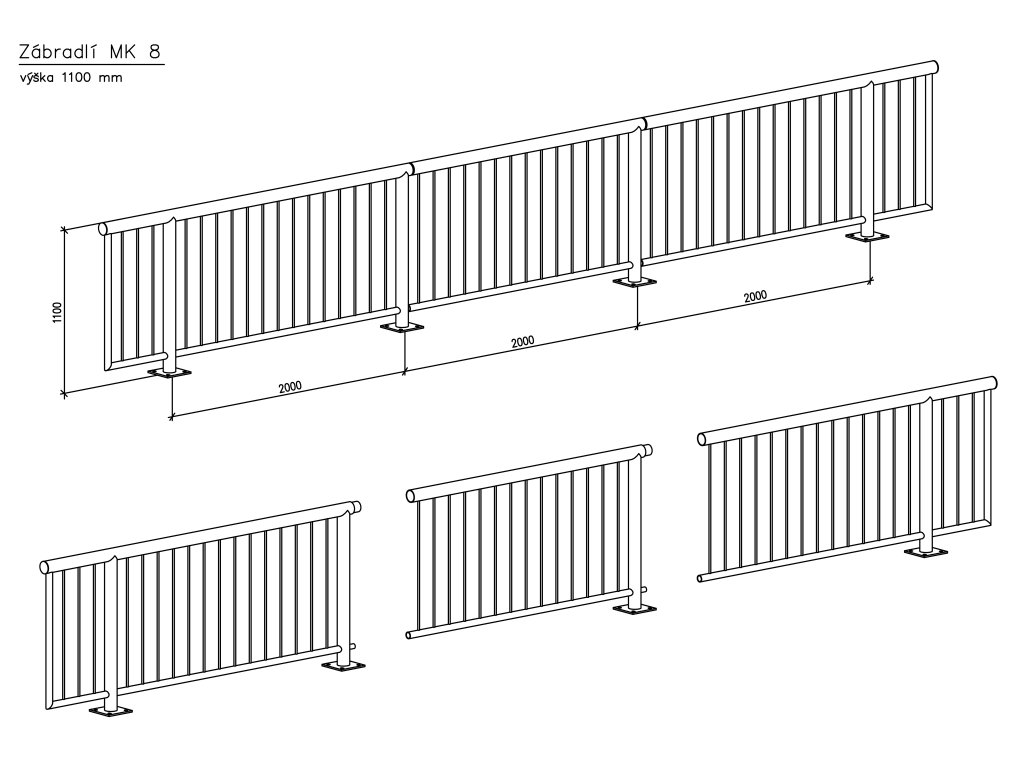 Trubkové zábradlí se svislou výplní typ MK8, výšky 1100 mm od 5390 Kč/m bez DPH